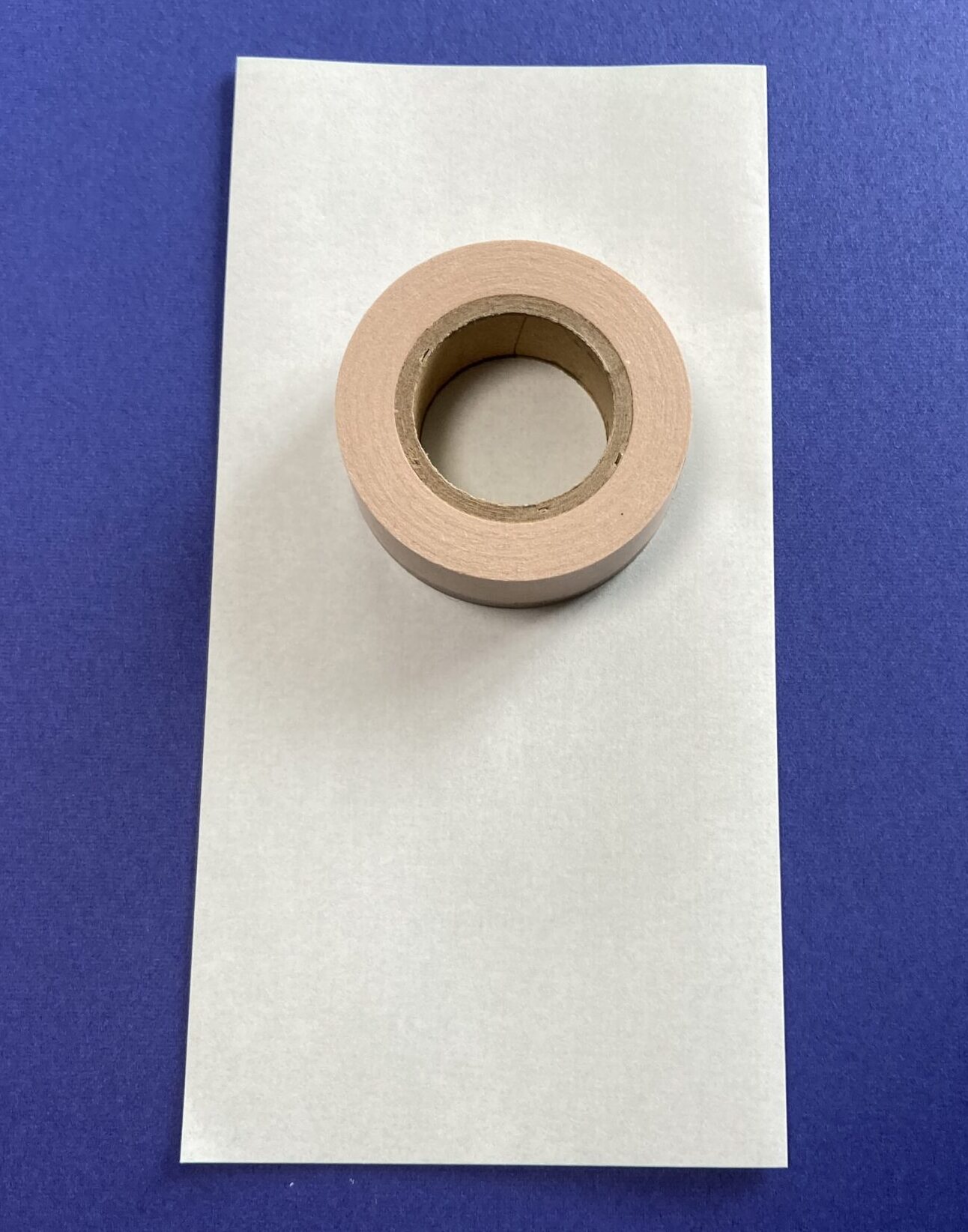⑤次に、先程の折り紙を使い、顔のパーツを作っていきます。マスキングテープを空いているところに置き、内側を鉛筆でなぞります。