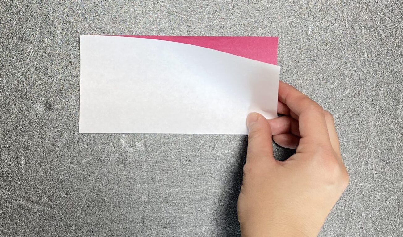(後ほど鉛筆で線を描くので、白を表側にして折っていきましょう。)