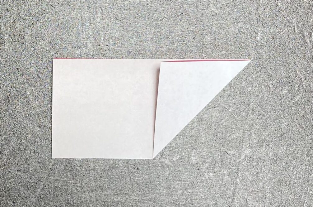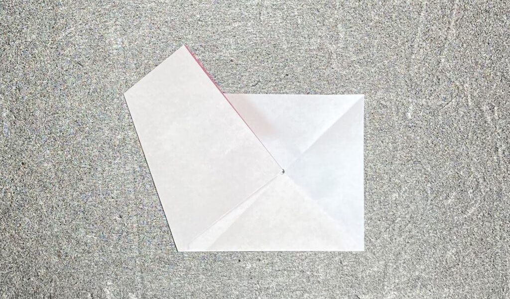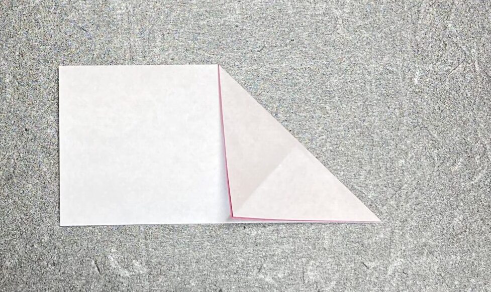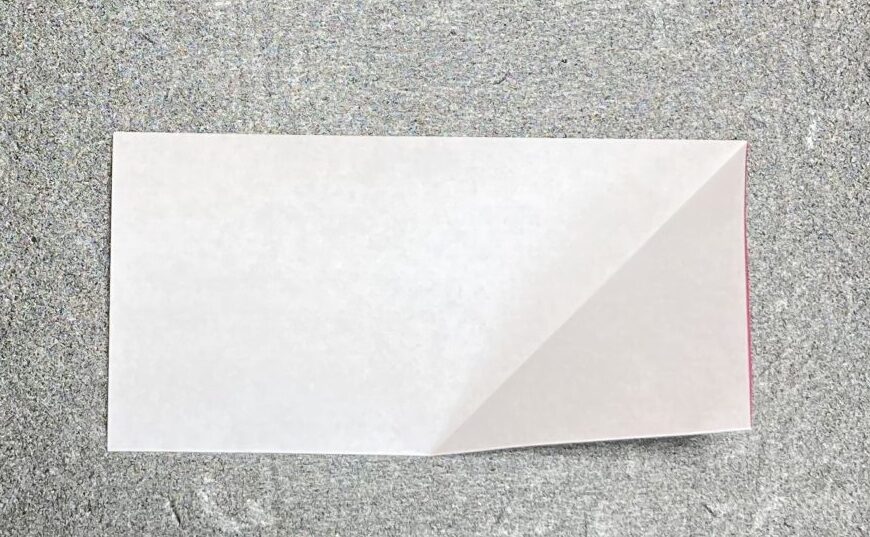 ④次に右上角を中心に合わせて下に折ります。