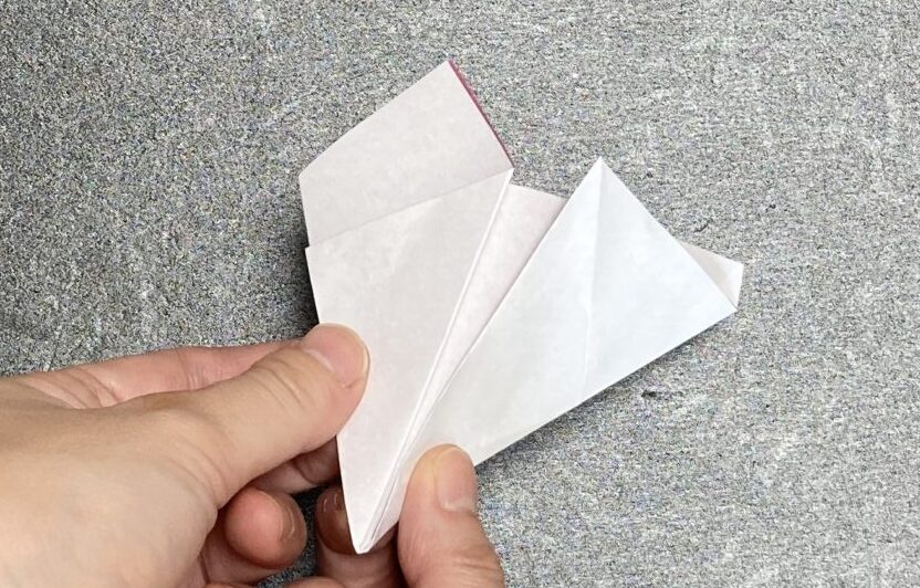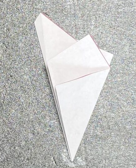 ⑥×印に合わせた角をさらに折ります。
