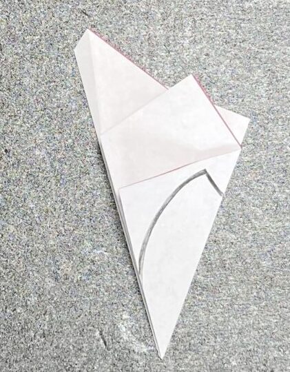 ⑨下図のように鉛筆で線を描き、ハサミで切ります。
