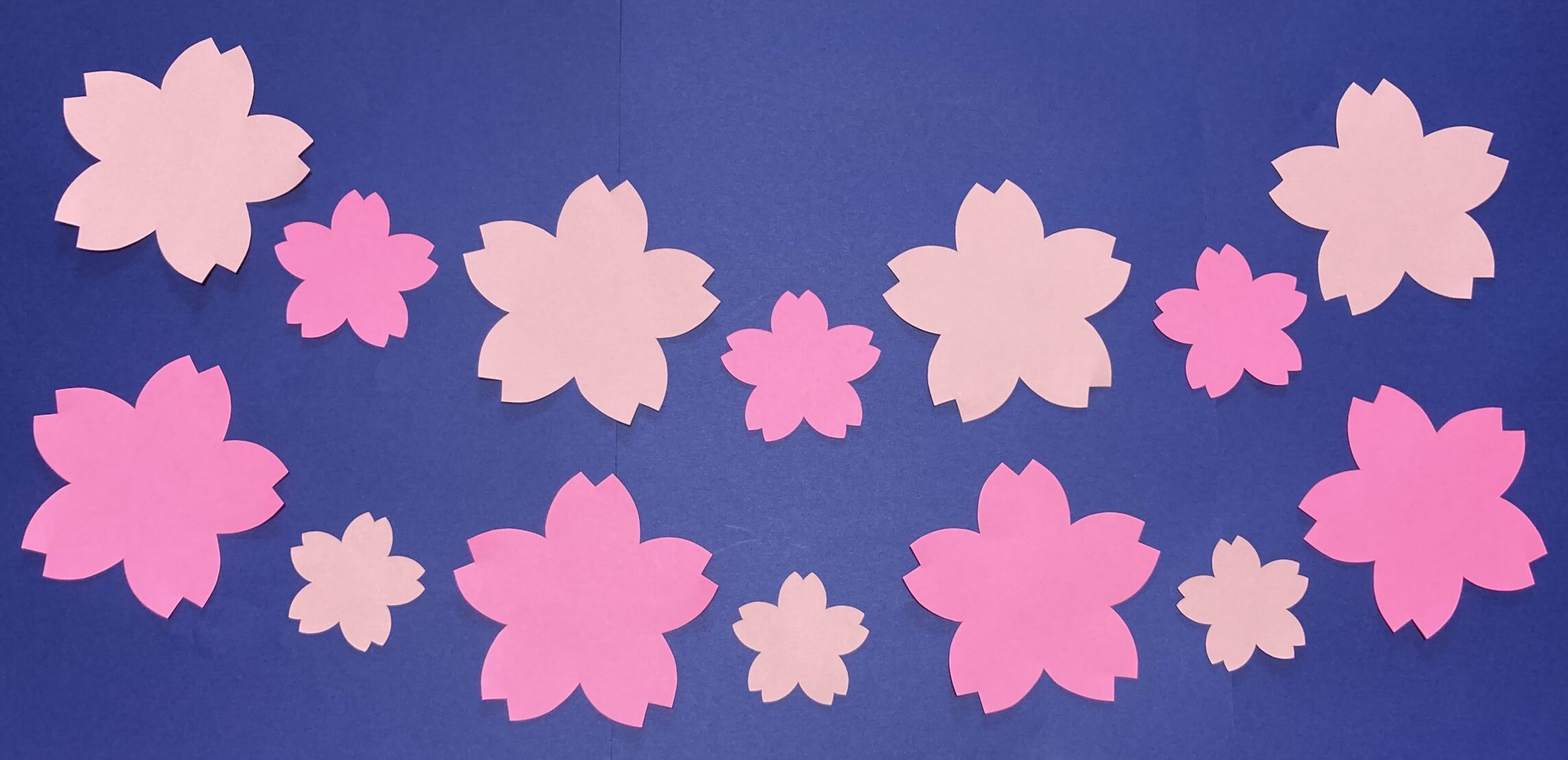 画用紙の色や桜のサイズを変えると綺麗に飾れます。