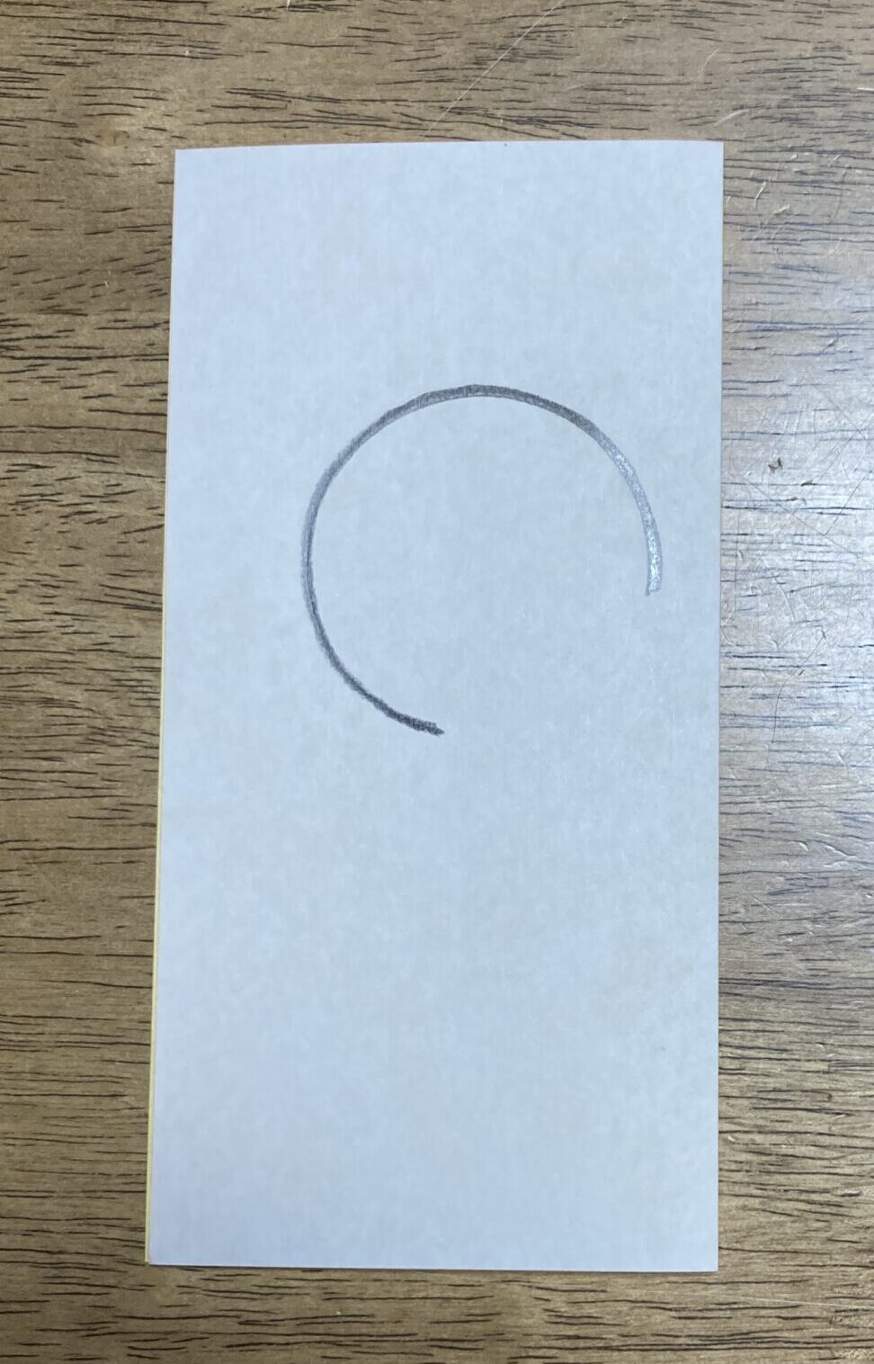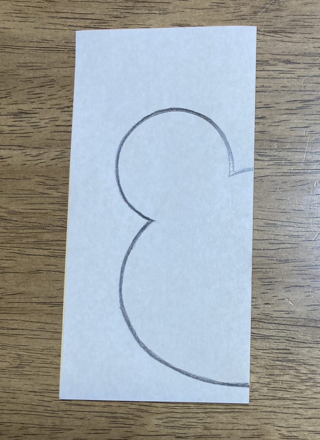 ④輪郭の真ん中にマスキングテープを置き、半円を描きます。(マスキングテープは、外側をなぞります。)