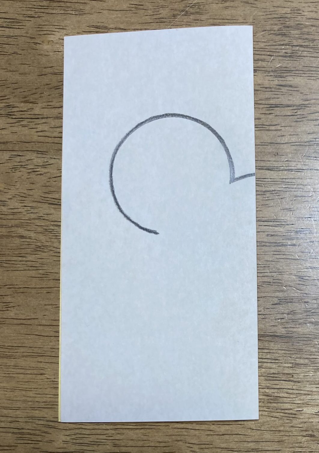 ②マスキングテープを置き、鉛筆で3/4ほどなぞります。