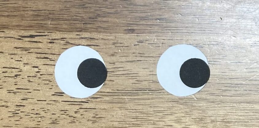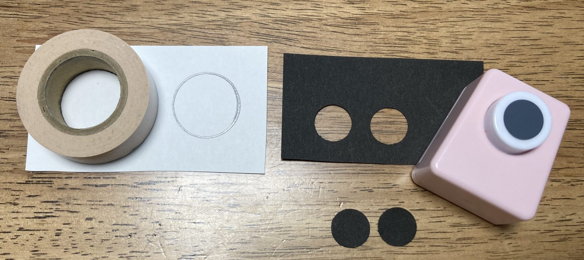 ⑦仕上げに、マスキングテープとクラフトパンチを使い、白目と黒目を作ります。